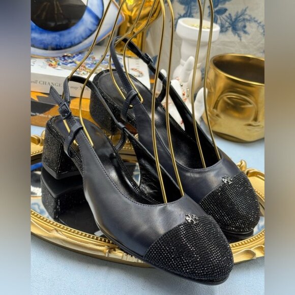 🆕 TORY BURCH 🧿 NWOB Cap-Toe Pavé Slingback Pump, Black & Navy - Sz 8M