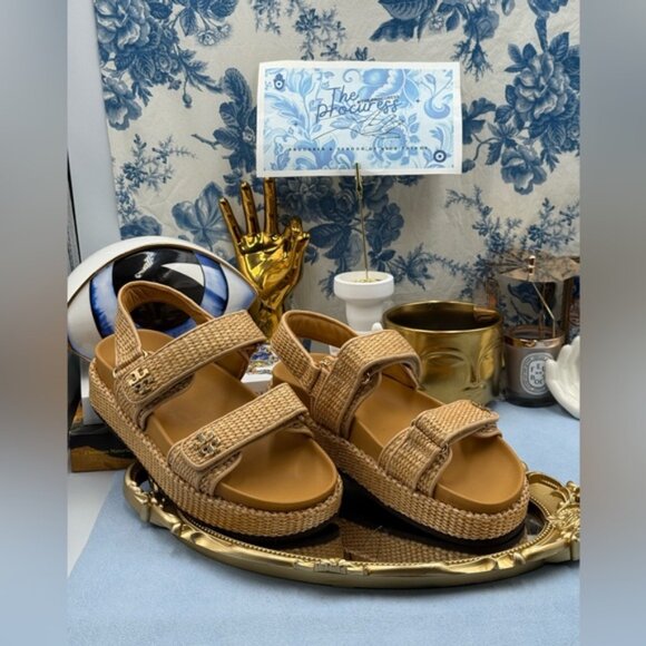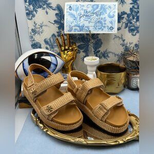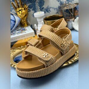 🆕 TORY BURCH 🧿 NWOB Kira Sport Sandal, Havana Sand Natural Raffia - Sz US 7