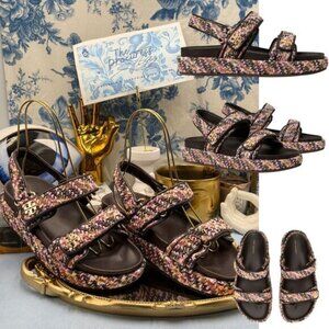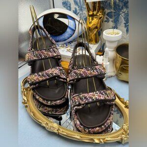 🆕 TORY BURCH 🧿 NWOB Kira Sport Sandal, Rose Cocoa Multi Tweed Dad Sandal Sz6.5