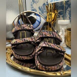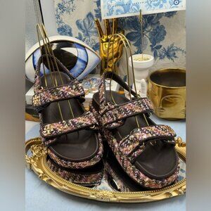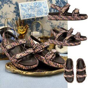 🆕 TORY BURCH 🧿 NWOB Kira Sport Sandal, Rose Cocoa Multi Tweed Dad Sandal Sz7.5