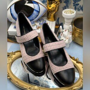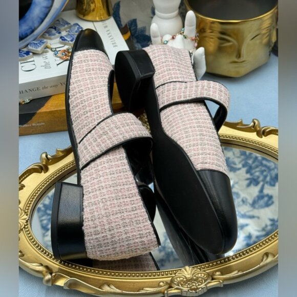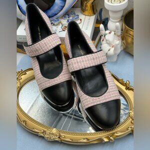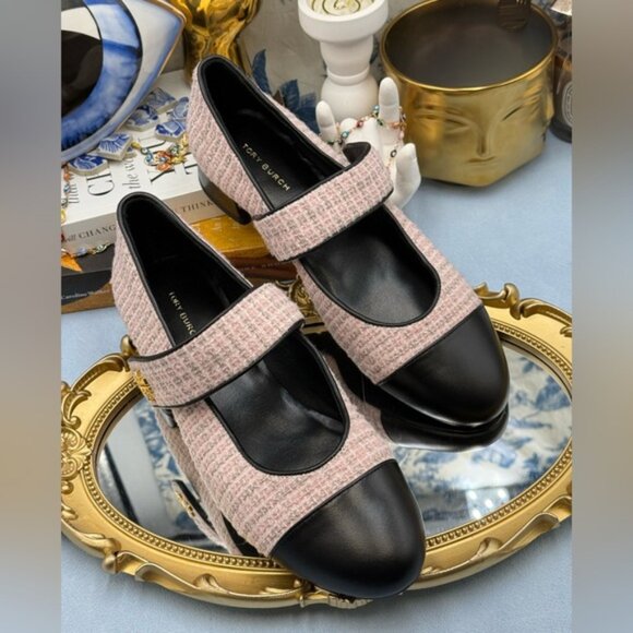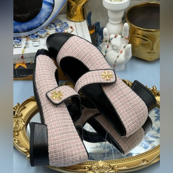 🆕 TORY BURCH 🧿 NWOB Mary Jane Heeled Ballet Flat, Pink Tweed, Sz 8 *SAMPLE*