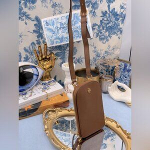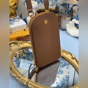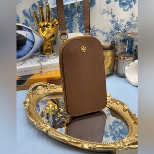 🆕 TORY BURCH 🧿 NWOT Emerson Phone Crossbody, Brown, Leather Strap - AUTH