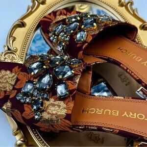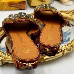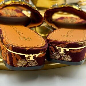 🆕 TORY BURCH 🧿 NWOT Martine 25mm Slide, Burgundy & Gold Jacquard, Sz 7.5