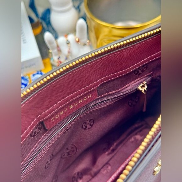 🆕 TORY BURCH 🧿NWOT Mini Emerson Top Zip Tote with Chain Strap, Imperial Garnet