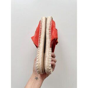 TORY BURCH Orange Suede Double Buckle Espadrille Slide Sandals, Size 7.5