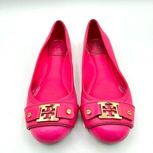 Tory Burch Pink Leather Loafer Ballerina Flats with gold Ornaments - Size 6 M
