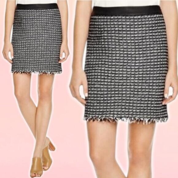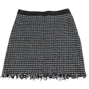 TORY BURCH Raffia A-Line Tweed Fringe Skirt Sz 8 Black White