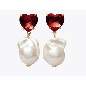 Brand new TORY BURCH Red Crystal Heart and Pearl Drop Earrings