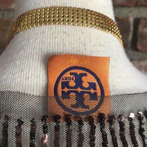 TORY BURCH SHEER BROWN Micro Mini Sequin Striped Jacket Top Small