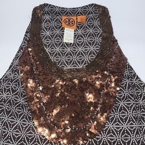 TORY BURCH Sequin and beaded Sunkiss Lightweight cotton tank Dress size 4