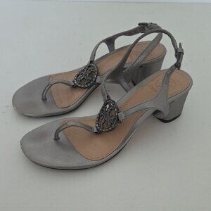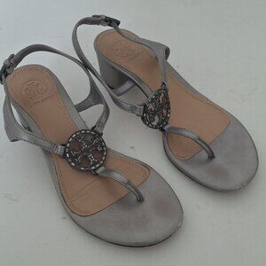 TORY BURCH | Silver Logo Thong Sandals Heels Sz 6M