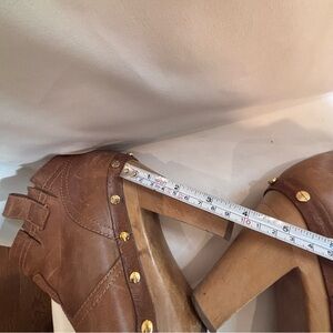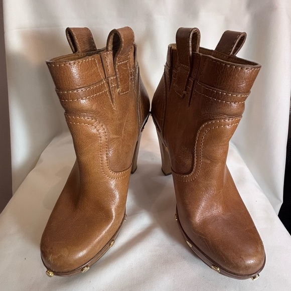 TORY BURCH Sz 6.5 Leather High Wooden Heel Bootie Clogs Distressed Rivets Studs