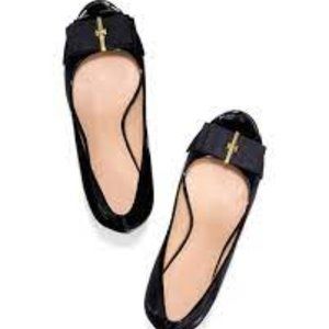 TORY BURCH TRUDY BLACK PATENT Leather Gold Detail Open toe Flats