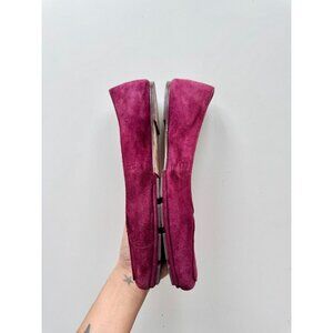 TORY BURCH Wine Burgundy Suede Leather Plastic Logo Driving Loafers, Size 9