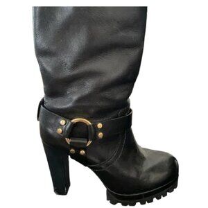 Tory Burch motorcycle platform boots. Gold buckle details. Very comfortable with good grip. Excellent condition!