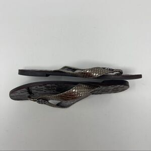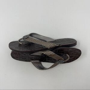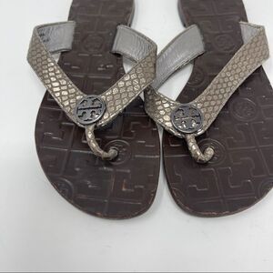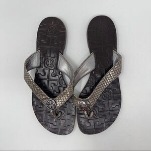 TORY BURCH Sandals Thora Silver Leather Snakeskin Flip Flop Women’s Size 4 Flat