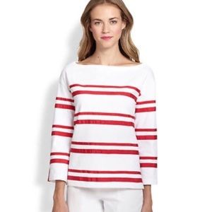 TORY Burch Grosgrain Ribbon-Stripe Kendall Blouse Size Large