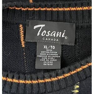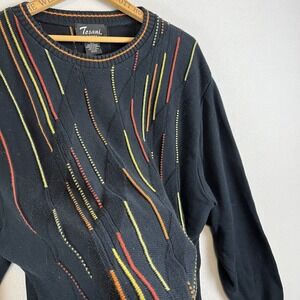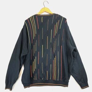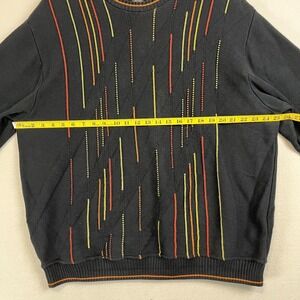 TOSANI Vintage Textured Knit Coogi Style Black Colourful Stripe Mens Sweater XL