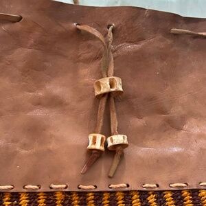 SHOULDER STRAP: Leather with bone accents, Not Removable, Not Adjustable. 40 in. L.