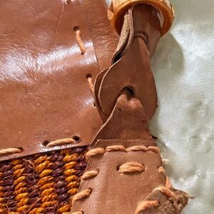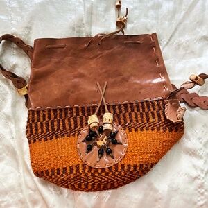 TOTE, GENUINE KENYA SAFARI, HANDWOVEN SISAL & LEATHER, ONE-OF-A-KIND, GENUINE BONE ACCENTS, SHOULDER STRAP, DRAWSTRING LEATHER CLOSURE, UNLINED, NO POCKETS, NEVER USED, NO DAMAGE