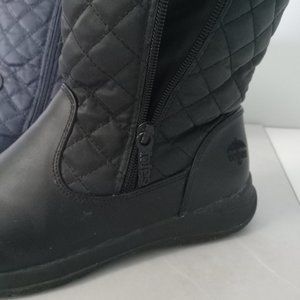 Totes Jade style waterproof boots. Quilted material tops with rubber bottoms. Zippers on both side of the boots for easy wear. Gently loved and in good condition.