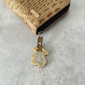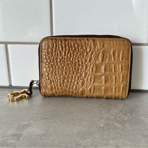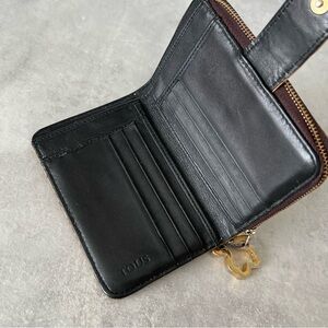 Good condition - normal signs of wear in & out, tarnishing on the hardwares. Zipped closure for your change, multiple cardslots, bill compartments. Buttery soft interior leather. Very well made wallet.