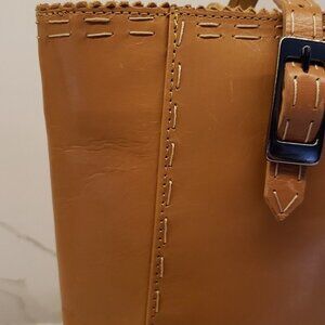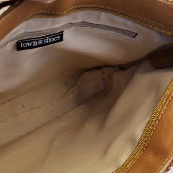 TOWN Shoes Handbag purse brown stitch detail 9.5" x 11" x 3" Handle opening