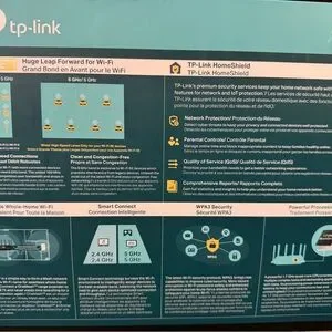 TP-Link router with dual-band capability. Features smart connectivity. Provides enhanced network security.