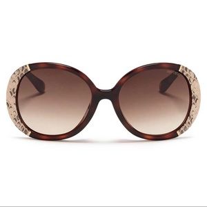 Women's Havana Brown Millie Snakeskin Leather-Trimmed Tortise Shell look Sunglasses.. Oversized square frames, glossy or matte rims, saddle nose bridge with integrated nose pads