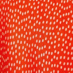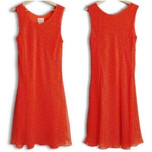 • Sleeveless scoop neck pullover style dress in orange with all-over white polka dot pattern. Fully lined.