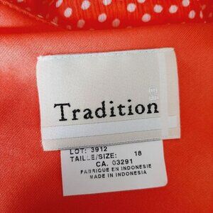 TRADITION Polka-Dot Sleeveless Flowy Midi Dress Orange & White Sz 18