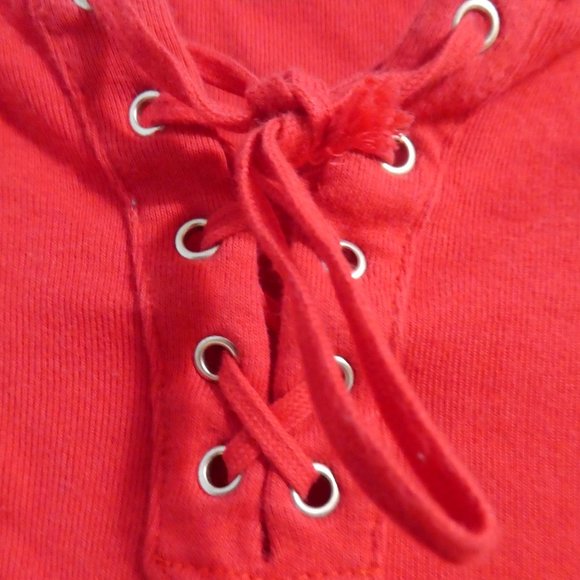 TRADITION | large 14-16 | Red Pullover Shirt With Lace-Up Front | 100% Cotton