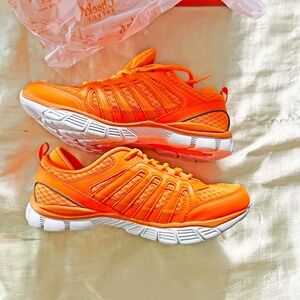 TRAINERS, TONY LITTLE CHEEKS ENERGY, LADIES SZ 8.5B, TANGERINE, FABRIC, RUBBER SOLES, NEW NEVER WORN, IN ORIGINAL BOX