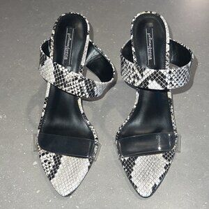 TRANSPARENT band snakeskin print double straps heeled mules size 7