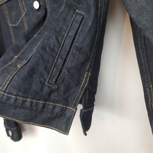 Excellent like new condition (minus belt). Jacket still looks great and can we worn beltless as there's no loops just slit in the denim.