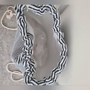 TRÏBE Canvas & Raffia Nautical Black & White Striped Backpack NWT