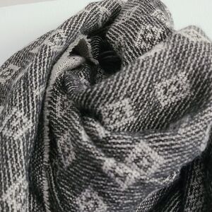 Grey diamond design scarf with black tassels would be a great addition to your fall /winter wardrobe.