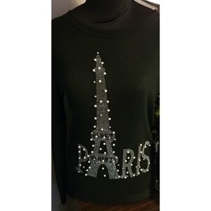 TRÏBE Paris Pearl Rhinestone Embellished long sleeve Black Sweater Size M NWT