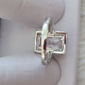 A gorgeous CZ sterling silver plated Statement ring. A radiant stone with smaller chip stones surrounding...stamped 925
