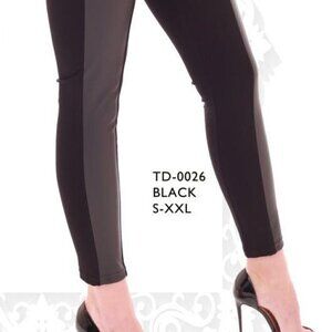 TRÏBE Tummy Control Solid Black Leggings With Faux Leather Size Medium NWT