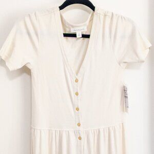TREASURE & BOND Button Front Rib Dress In Ivory Dove Womens Sz. Small V-Neck NWT