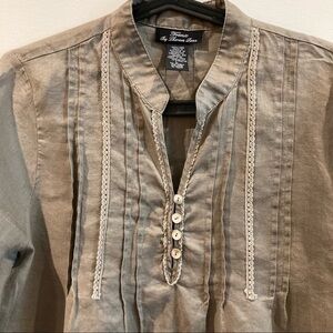 TRENDZ By Theresa Rendz 100% Linen Short Sleeve Pleated Front Shirt Blouse