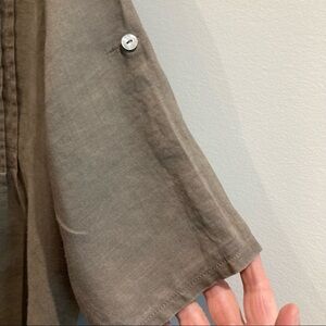 TRENDZ By Theresa Rendz 100% Linen Short Sleeve Pleated Front Shirt Sz L. Roll tabs on hem and sleeves. Flowy and breeze.