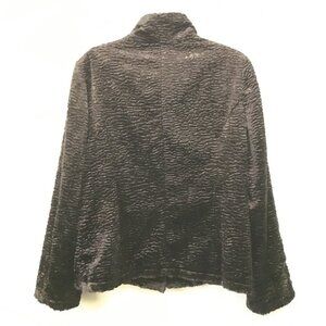 Very good condition, dark brownish-black faux sable/mink, high collar jacket with unique snap closure by Tribal. A fantastic Canadian-based brand. Loved throughout the 70s and still delivers the same high quality pieces today.