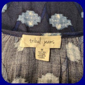 TRIBAL JEANS || Blue Boho Raglan Sleeve Top (SIZE M)