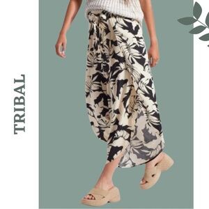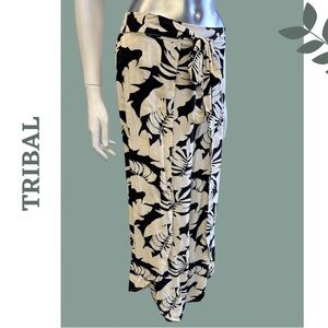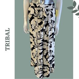 TRIBAL PRINTED PULL-ON BELTED PANTS Tropical Black Cream Soze XS