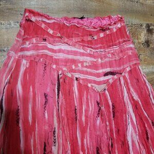 TRIBAL Peasant Skirt Bohemian 12 Pink Striped Festive Feminine