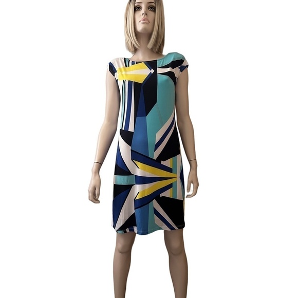TRIBAL Shift Dress Colourful Abstract Geometric Print Made in Canada Jersey