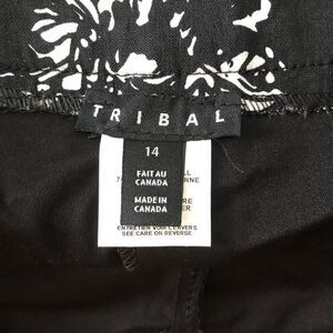 TRIBAL Size 14 Black/White Flat Front Skirt with Pockets