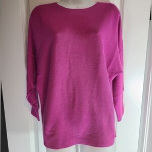 TRIBE Cotton Blend Fuchsia Barbie Pink Sweater Top Size Large NWT
